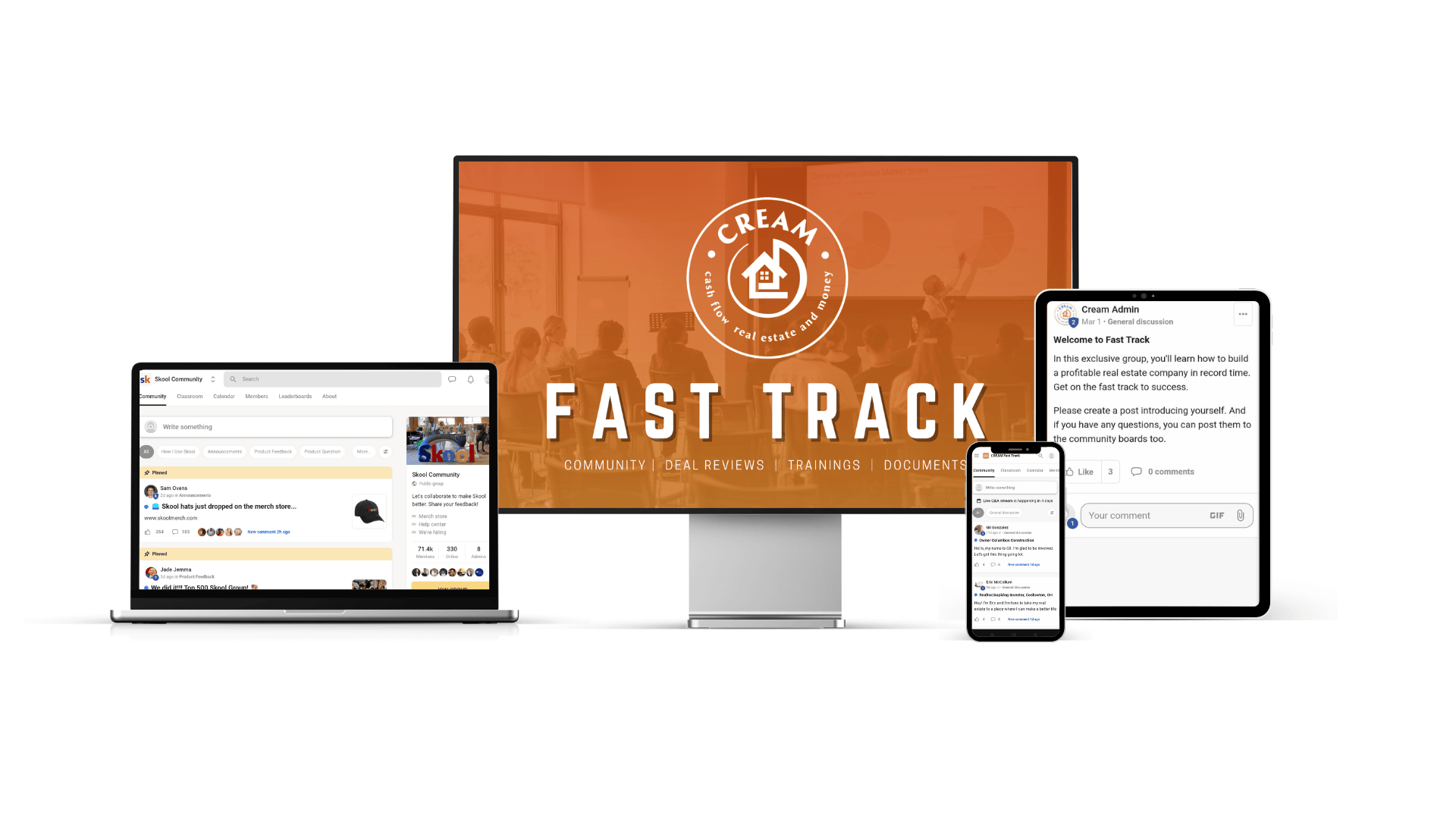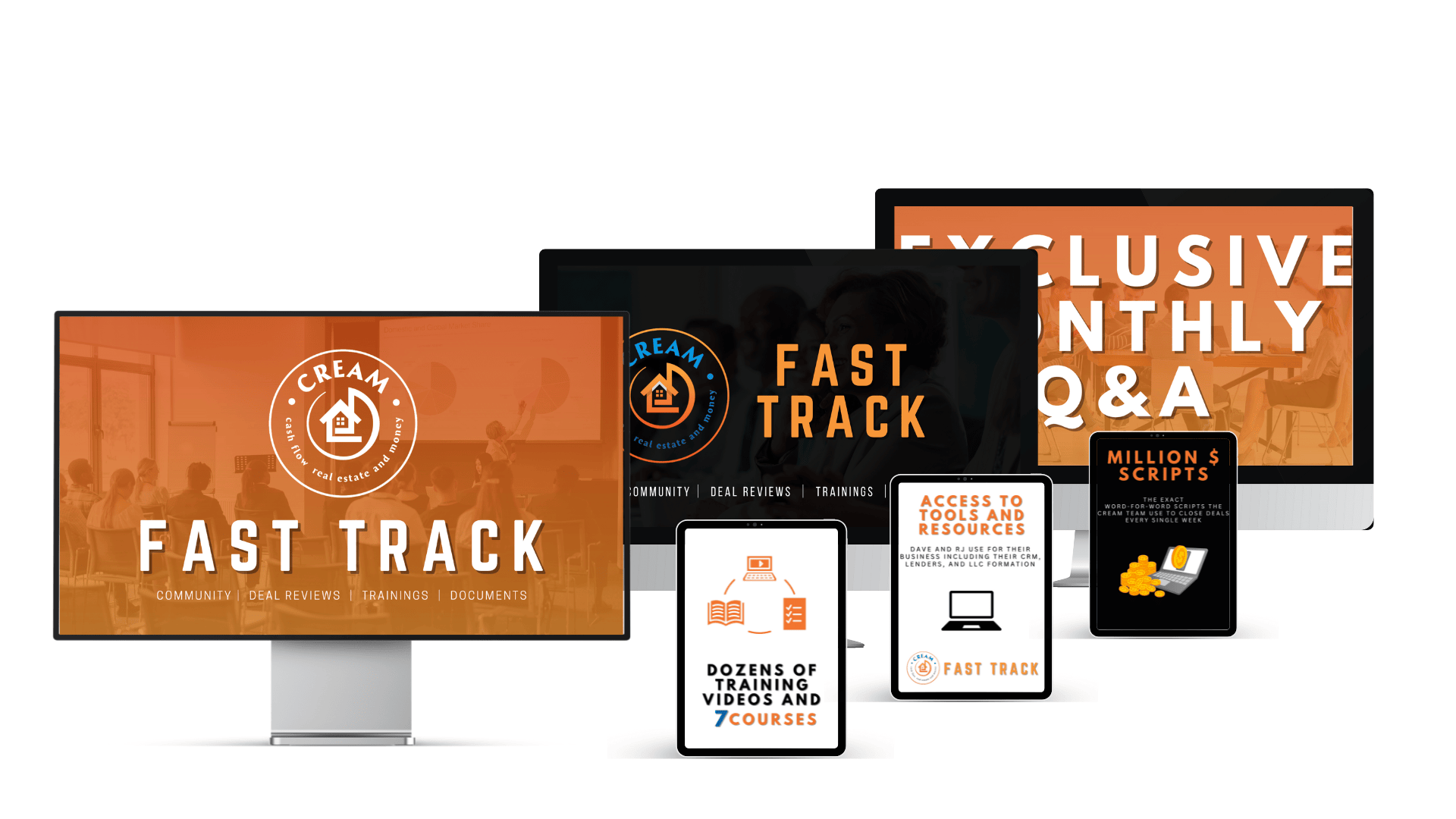 Fast Track is the place to be if you want to make full-time income from real estate. Our live and recorded trainings give you everything you need to close your first deal within 90 days. And if you're not 100% satisfied with your first month, we'll refund you no questions asked.